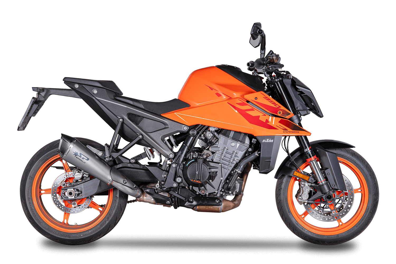 Questo Slip-on realizzato in titanio, con carter paracalore e fondello uscita in carbonio, dalla linea super aggressiva, riduce il peso di oltre il 50% rispetto all’originale e si integra perfettamente alle linee spigolose del Duke 990 con un sound accattivante nel rispetto della normativa Euro5.