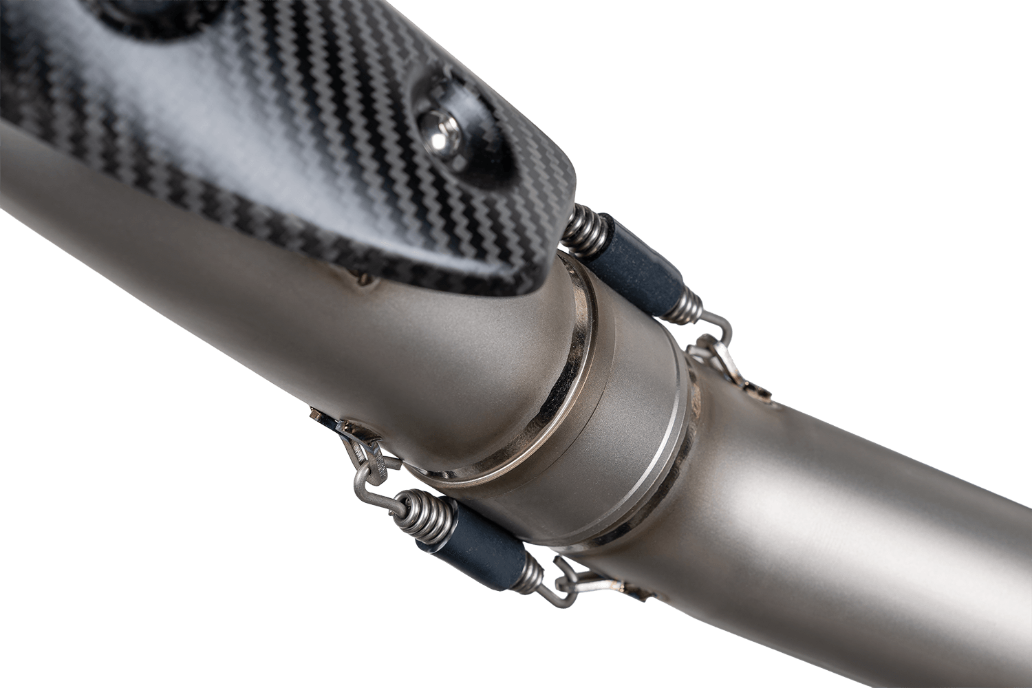 La sua struttura in titanio e la nervatura esterna esaltano il look racing della moto, mentre il volume interno garantisce un’efficace riduzione del rumore, rispettando le normative acustiche dei principali circuiti europei.