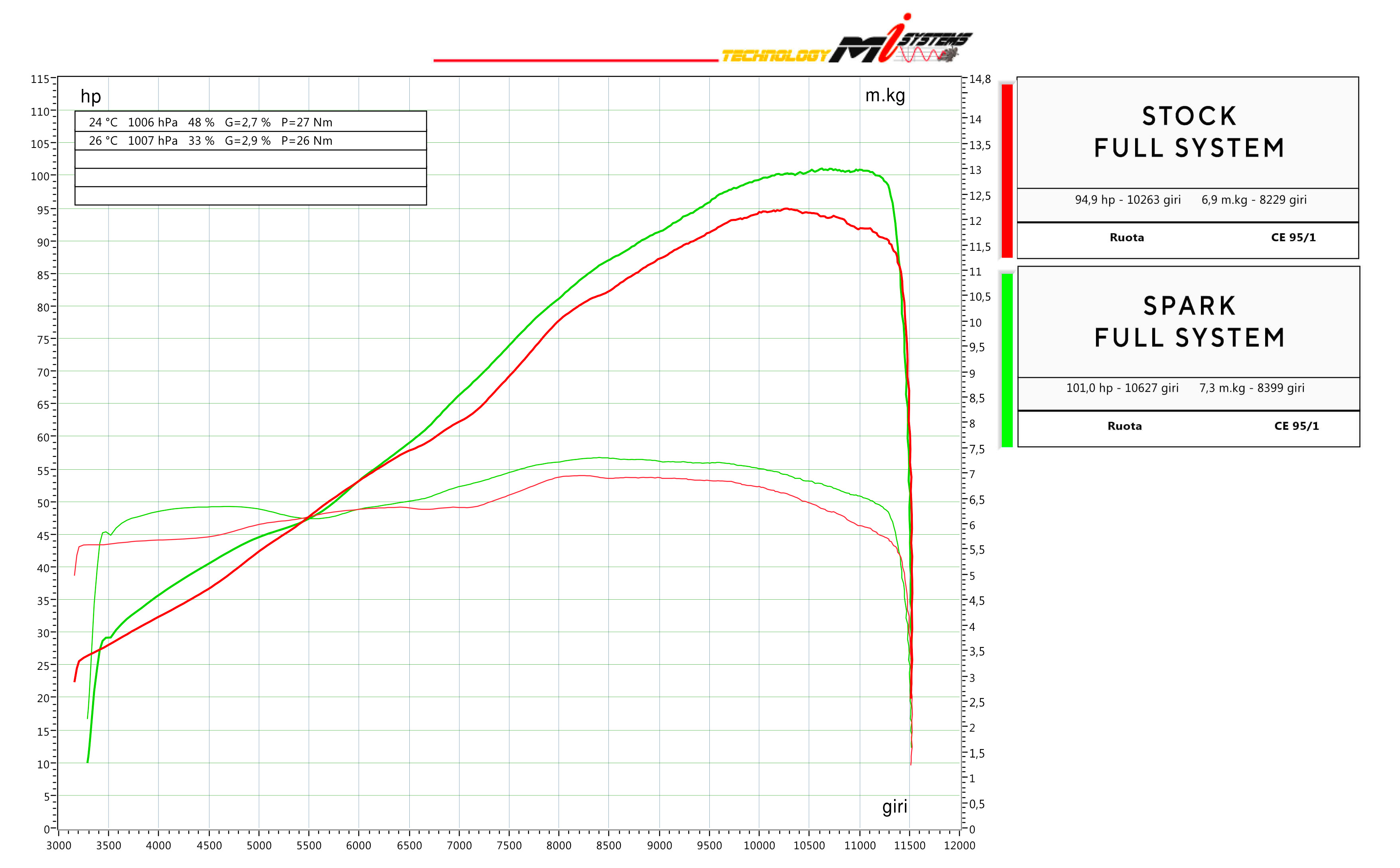 Per tutte le proposte, l’ottimizzazione dei diametri e delle lunghezze dei collettori garantiscono un forte incremento di potenza massima su tutta la curva.