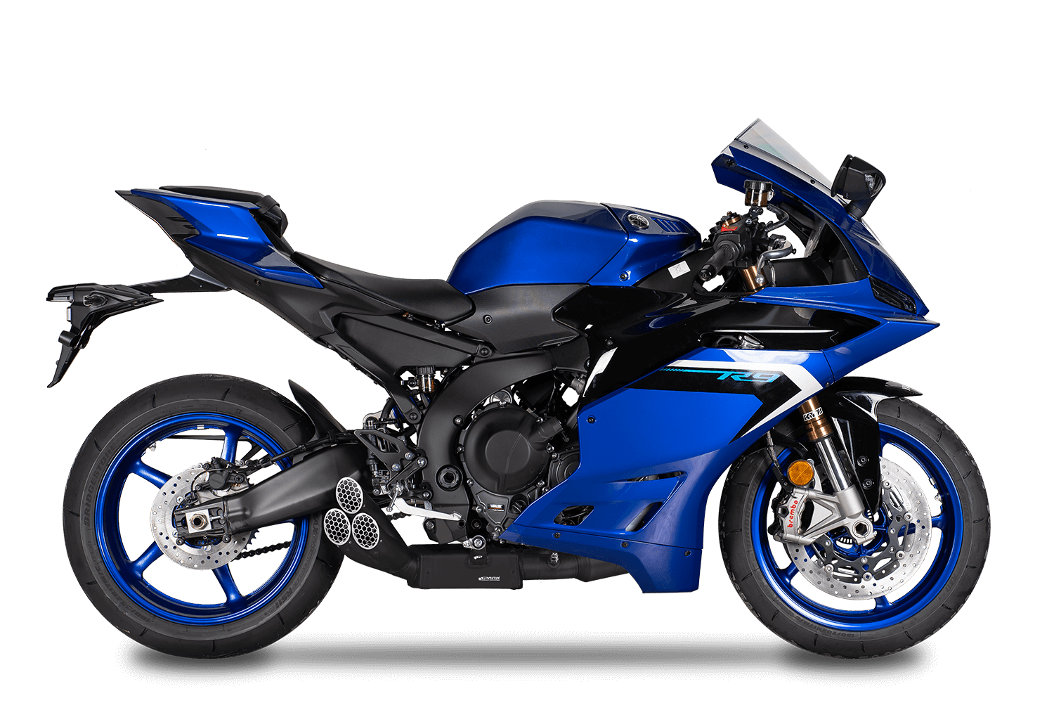 La stessa configurazione è disponibile per MY 21-23 con il super aggressivo silenziatore MotoGp: tondo, molto corto, disponibile in titanio (GYA8887TOM), o dark (GYA8887DOM), con una grande diametro uscita che enfatizza il sound del 3 cilindri.