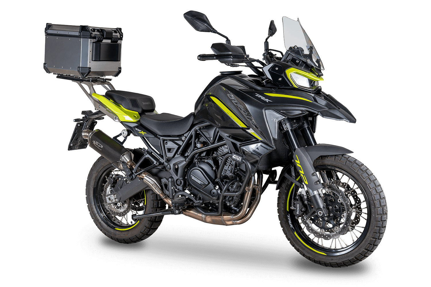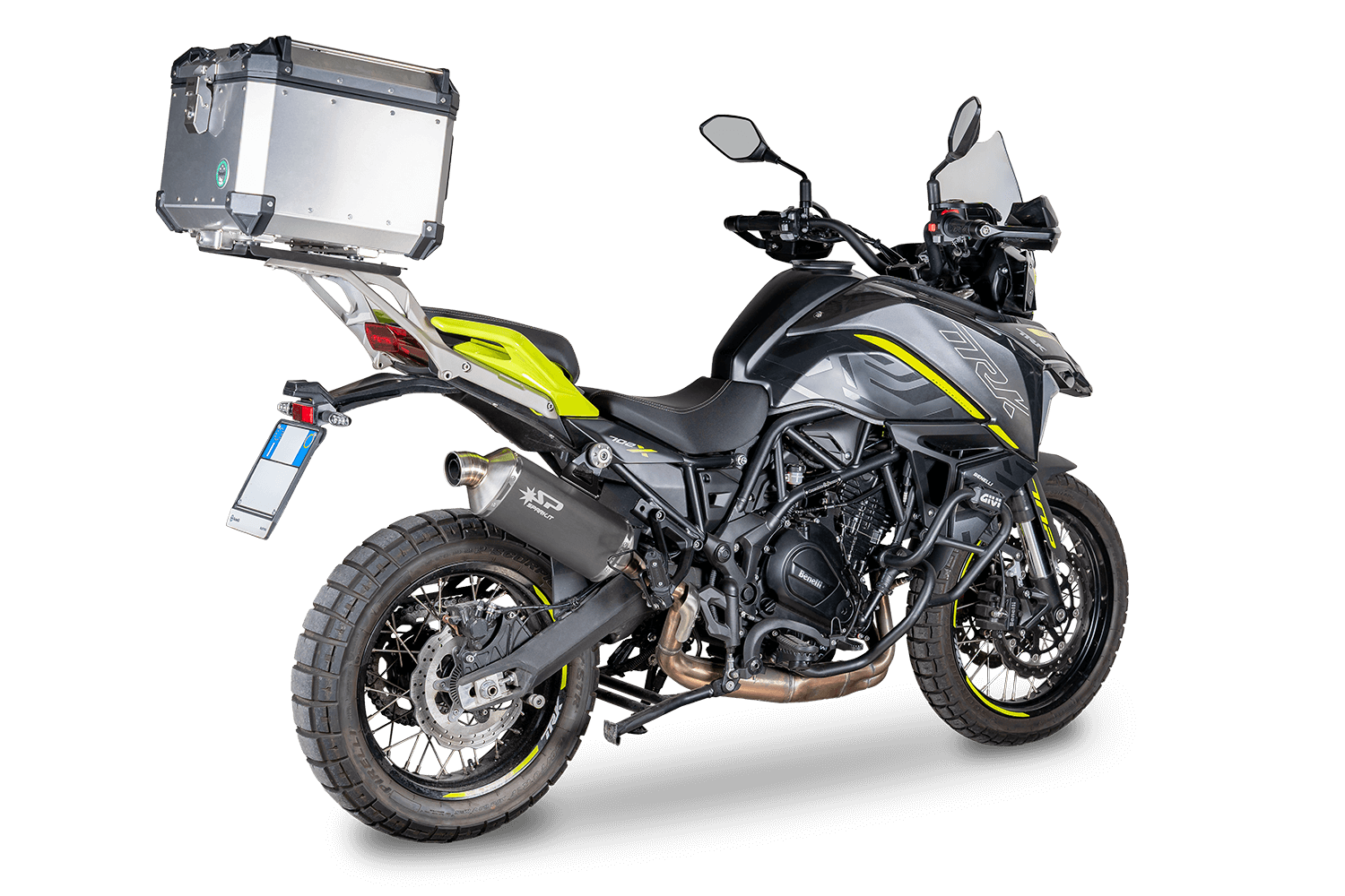 Lo sviluppo dell’R&D Spark per la Benelli TRK 702 punta a offrire un silenziatore dal design aggressivo e ricercato, dal sound profondo e coinvolgente, rispettando i limiti fonometrici della normativa Euro 5. Le proposte sono due, una più sportiva, full titanio con fondello in carbonio e l’altra perfettamente in sintonia con l’anima adventure della TRK 702.
