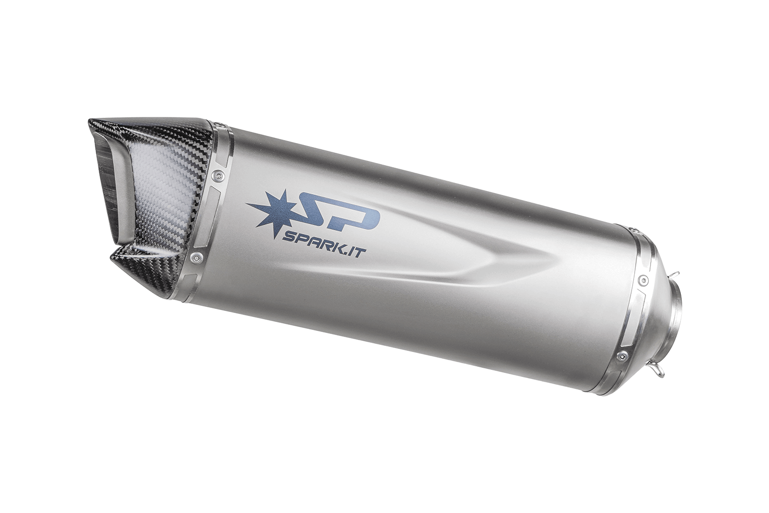 - Per abbattere i dB, Spark propone la nuova evoluzione con silenziatore Force Evo (104dB) con fondello in carbonio dalla linea molto aggressiva al quale è possibile associare i collettori in acciaio inox oppure in titanio (GBM8824T). Disponibile anche le versione con silenziatore da l.450mm (GBM8826T).