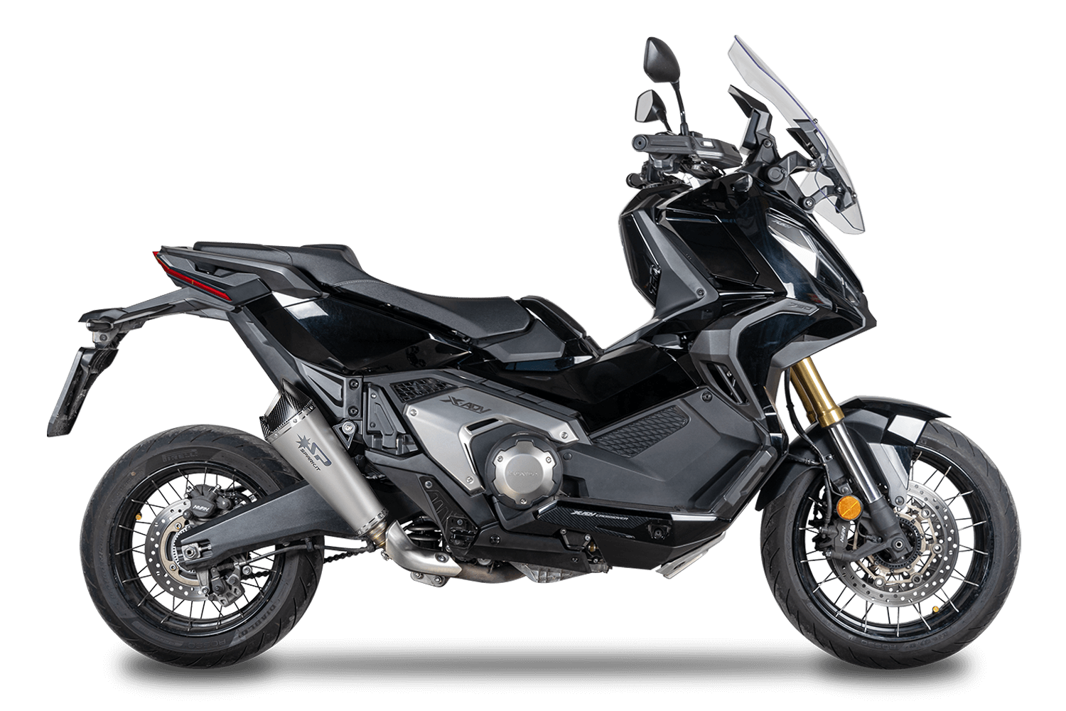 Nata per stupire: Honda X-ADV 750. Spark per questa moto unica nel suo genere propone uno slip-on Konix Evo dal design accattivante per migliorare l'erogazione, il sound e ridurre notevolmente il peso (-38% rispetto all'originale).