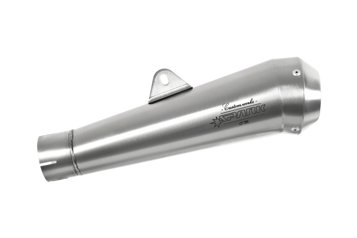 Il silenziatore può essere installato sia sul lato destro che sul lato sinistro della moto (il logo Spark è presente su entrambi i lati). E' possibile personalizzare il silenziatore aggiungendo logo o marchiatura dedicata.