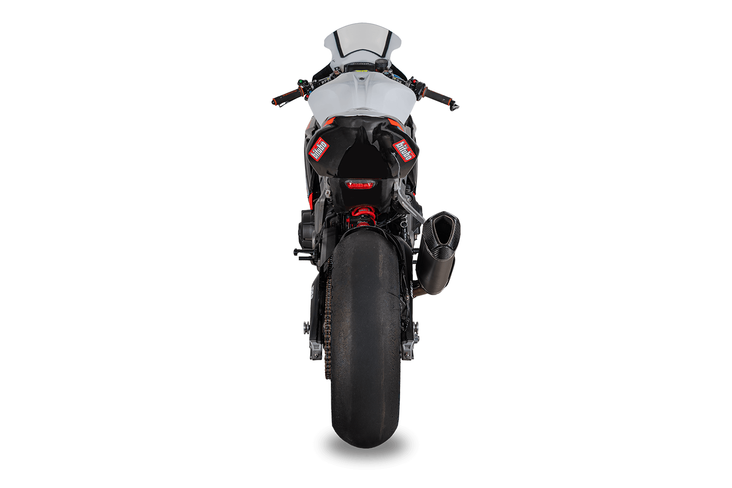 La sua struttura in titanio e la nervatura esterna esaltano il look racing della moto, mentre il volume interno garantisce un’efficace riduzione del rumore, rispettando le normative acustiche dei principali circuiti europei.