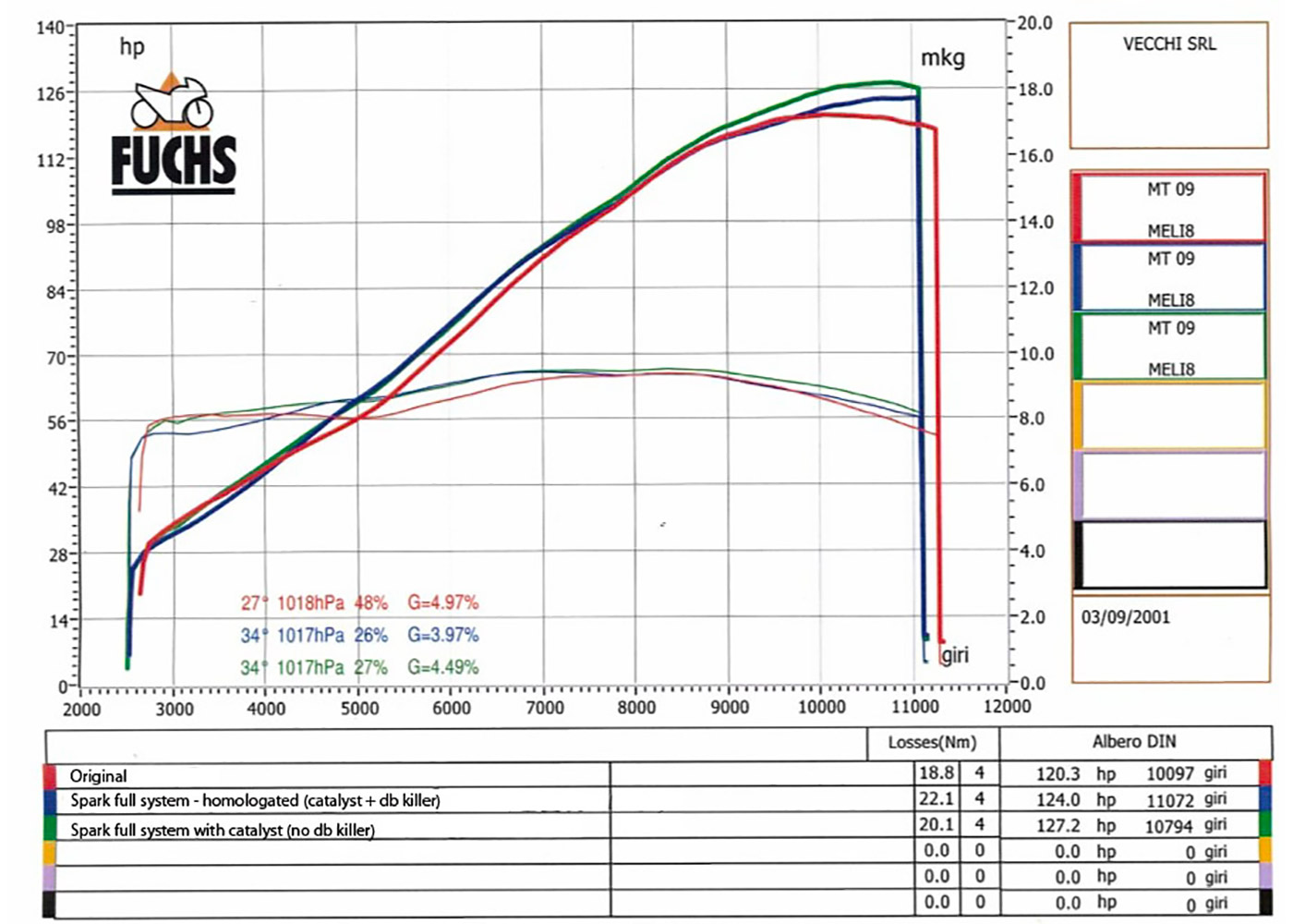 E per quanto riguarda le prestazioni? Anche qui, sono rimasto stupito, considerando che si tratta pur sempre di un sistema omologato. La prima cosa che ho notato è che ora, nelle accelerazioni a gas spalancato, basta un minimo invito per far sollevare l’anteriore in seconda, senza bisogno di aiutini con la frizione, e il banco prova ha confermato le mie impressioni, con un netto incremento di coppia tra i 3.500 ei 6.500. Il banco ha detto anche che togliendo il dB-killer il guadagno di potenza vale oltre 7cv a 10.000 giri (si passa dai 107,8 delle moto in configurazione standard a ben 114,9 col completo Spark). Davvero tantissimi, ma devo ammettere che così il sound diventa decisamente illegale, per cui non so quanto mi fiderò a lasciare il dB-killer smontato. Di sicuro non pensavo che l’erogazione e le prestazioni del CP3 Yamaha potessero migliorare tanto.